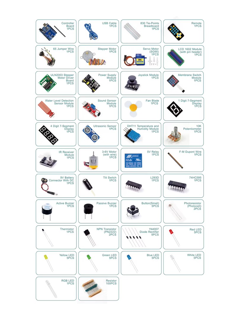 Zestaw przeznaczony jest dla uczniów, studentów, nauczycieli oraz hobbystów rozpoczynających pracę z mikrokontrolerami. Wszystkie elementy zostały wstępnie przetestowane pod kątem zgodności z płytą UNO R3 i dostarczane są w solidnym pudełku do przechowywania wraz z tutorialami w formacie PDF.