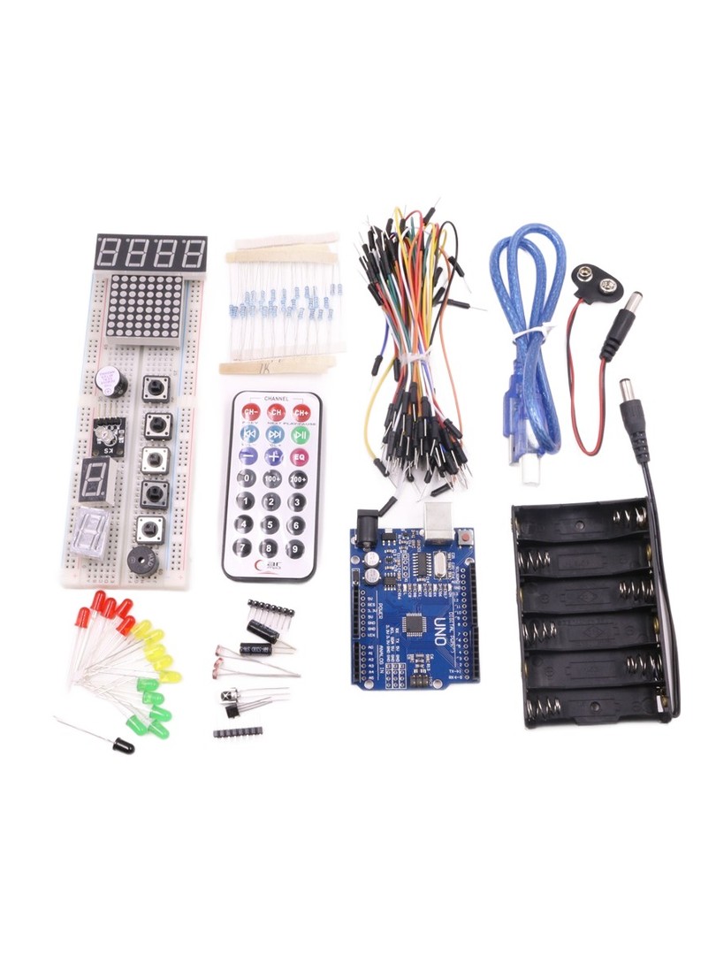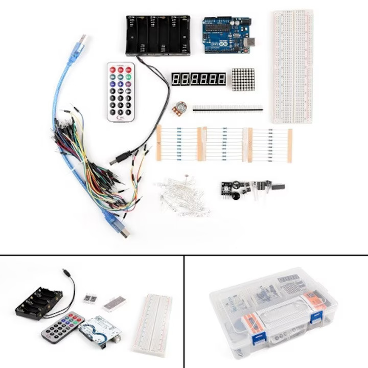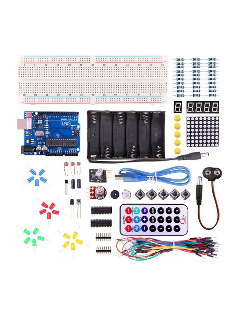 Rozszerzony zestaw nauki elektroniki i prototypowania zaprojektowany dla użytkowników, którzy opanowali podstawy Arduino i pragną realizować bardziej rozbudowane projekty z wykorzystaniem czujników, wyświetlaczy, układów logicznych oraz sterowania podczerwienią. Zestaw bazuje na płytce rozwojowej kompatybilnej z UNO R3 i umożliwia eksperymentalne budowanie rzeczywistych podsystemów elektronicznych.