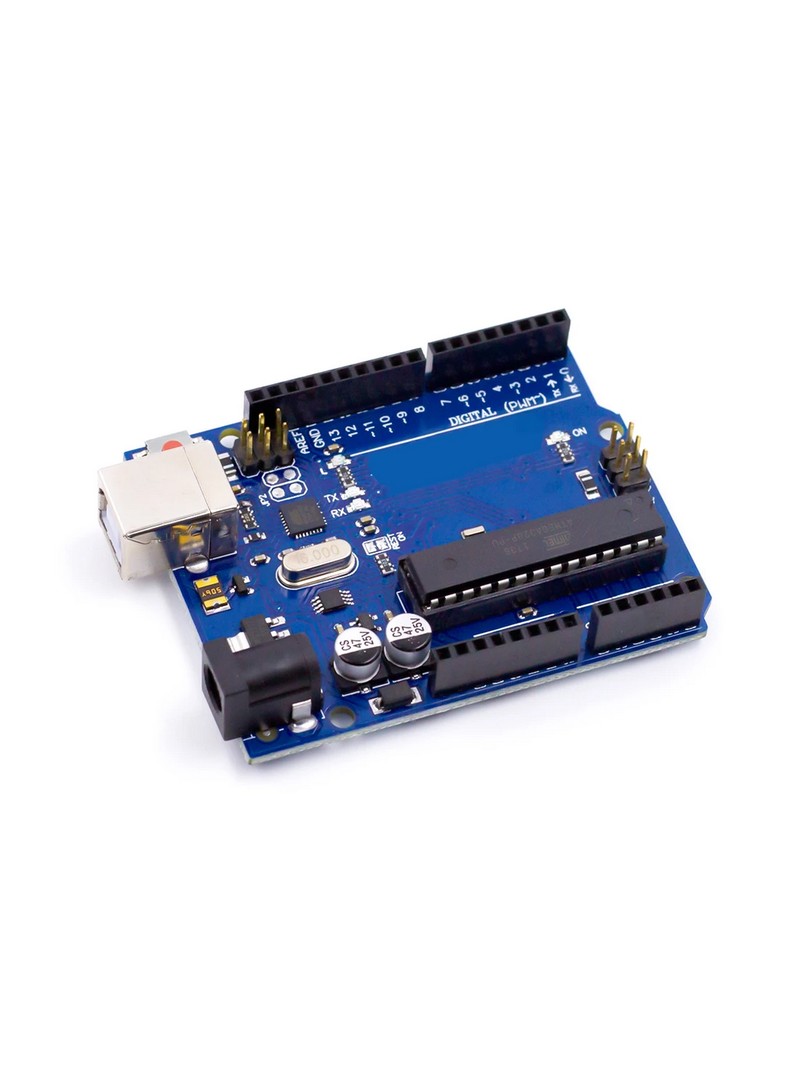 Dołączona płytka kontrolera oparta jest na mikrokontrolerze ATmega328P-AU i wykorzystuje interfejs CH340G do komunikacji USB, co umożliwia wygodne programowanie oraz wymianę danych z komputerem.