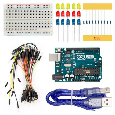 ProRock Arduino UNO R3 Compatible Basic Kit dostarcza podstawowe komponenty niezbędne do szybkiego rozpoczęcia nauki budowania prostych układów kompatybilnych z Arduino za pomocą płytki stykowej.