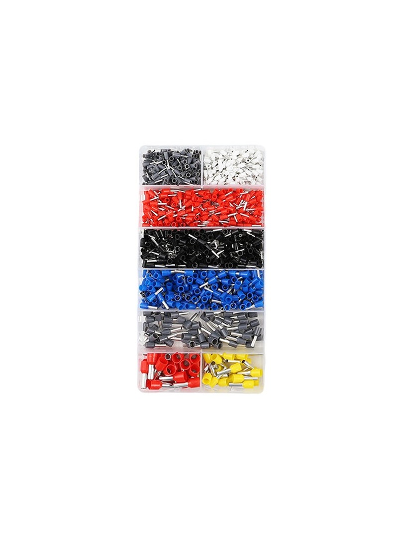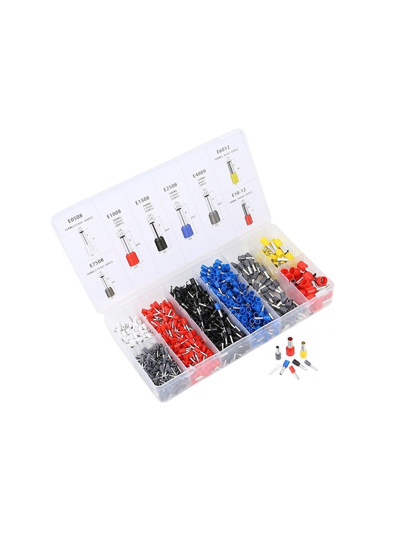 Zestaw ProRock zawiera tysiąc dwieście tulejek konektorowych przeznaczonych do zakańczania żył miedzianych w instalacjach elektrycznych. Tulejki izolowane zapobiegają uszkodzeniu włókien przewodu, poprawiają działający mocowania w zaciskach śrubowych i zapewniają stałe połączenia elektryczne. Wszystkie końcówki są uporządkowane w plastikowym pudełku organizerze.