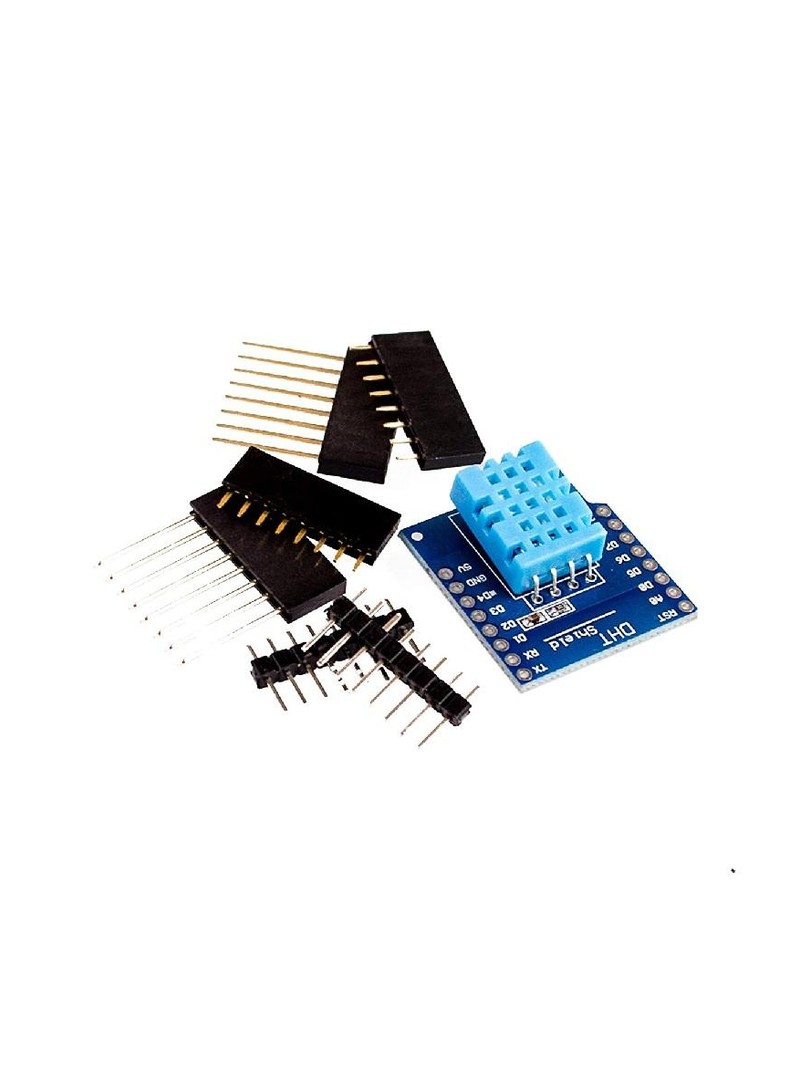 ProRock DHT Shield to kompaktowy moduł czujnika temperatury i wilgotności zaprojektowany do bezpośredniego montażu na płytce WeMos D1 Mini. Wykorzystuje cyfrowy czujnik DHT11 i komunikuje się z mikrokontrolerym za pomocą jednokanałowego interfejsu cyfrowego, co minimalizuje wymagania dotyczące okablowania. Moduł jest w pełni kompatybilny ze środowiskiem Arduino IDE i przeznaczony dla projektów edukacyjnych, prototypów inteligentnego domu oraz eksperymentów z technologią IoT.