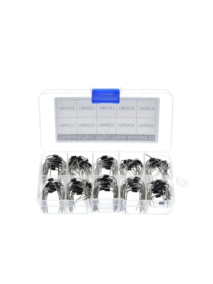Zestaw diod ProRock to gotowy asortyment stu diod prostowniczych i Schottky'ego przeznaczonych do prototypowania, napraw elektronicznych oraz celów edukacyjnych. Zestaw łączy standardowe diody prostownicze z serii 1N400x z szybkimi diodami Schottky'ego z serii 1N581x, obejmując najbardziej rozpowszechnione typy stosowane w układach prostowania, zabezpieczenia przed odwrotną polaryzacją oraz w szybkich przełącznikach niskonapięciowych.