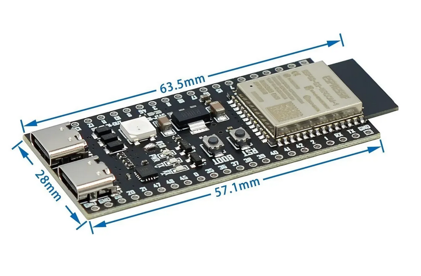 Układ ESP32-S3 wykorzystuje dwa rdzenie procesora LX7 działające niezależnie, co pozwala na jednoczesną obsługę zadań systemowych i aplikacyjnych. Jeden rdzeń może zarządzać komunikacją bezprzewodową i obsługą protokołów sieciowych, podczas gdy drugi wykonuje logikę aplikacji użytkownika. Zewnętrzna pamięć PSRAM podłączona jest przez interfejs SPI/Quad SPI/Octal SPI i rozszerza dostępną przestrzeń roboczą dla operacji wymagających dużych buforów danych. Wbudowany kontroler USB eliminuje konieczność stosowania zewnętrznych mostków szeregowych, umożliwiając bezpośrednie programowanie i debugowanie przez złącze USB Type-C. Moduł WiFi obsługuje tryby Station, SoftAP oraz Station+SoftAP, co pozwala na równoczesne łączenie z siecią i udostępnianie punktu dostępowego. Kontroler Bluetooth LE implementuje funkcje Long Range zwiększające zasięg transmisji oraz Extended Advertising umożliwiające przesyłanie większej ilości danych w pakietach rozgłoszeniowych.