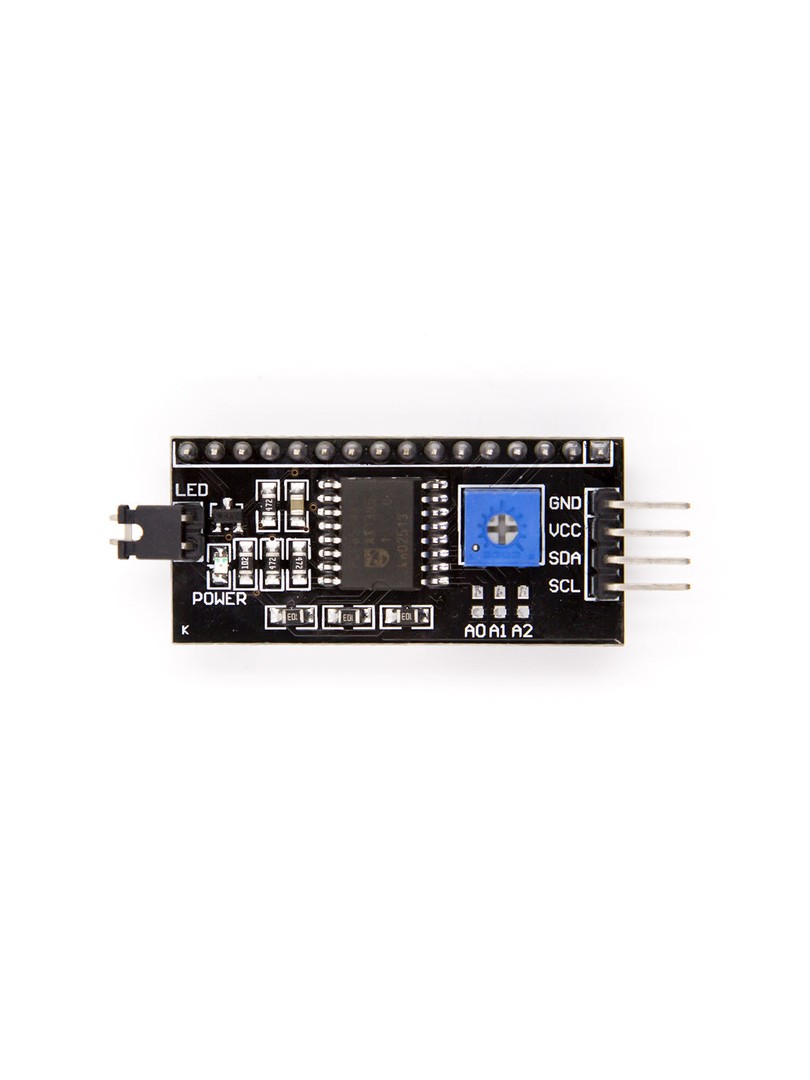Adapter umożliwia sterowanie kompatybilnymi wyświetlaczami znakowymi LCD1602 i LCD2004 z użyciem tylko linii SDA i SCL, zachowując jednocześnie możliwość regulacji podświetlenia i kontrastu bezpośrednio na płytce.