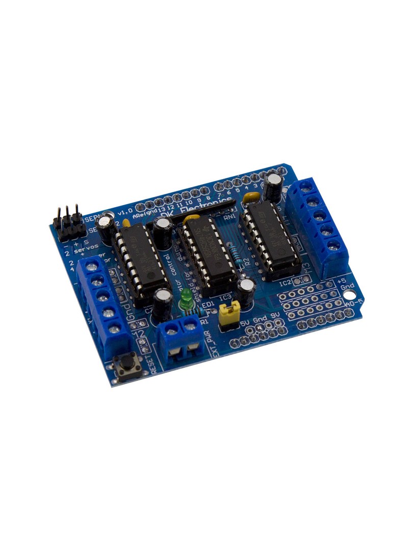 Moduł sterownika silników ProRock L293D to wielofunkcyjna płytka kontrolna oparta na układzie mostka H, przeznaczona do projektów robotycznych i automatyki wykorzystujących platformę Arduino. Umożliwia niezależne sterowanie dwukierunkowe wieloma silnikami prądu stałego lub silnikami krokowymi z jednej płytki bazowej.