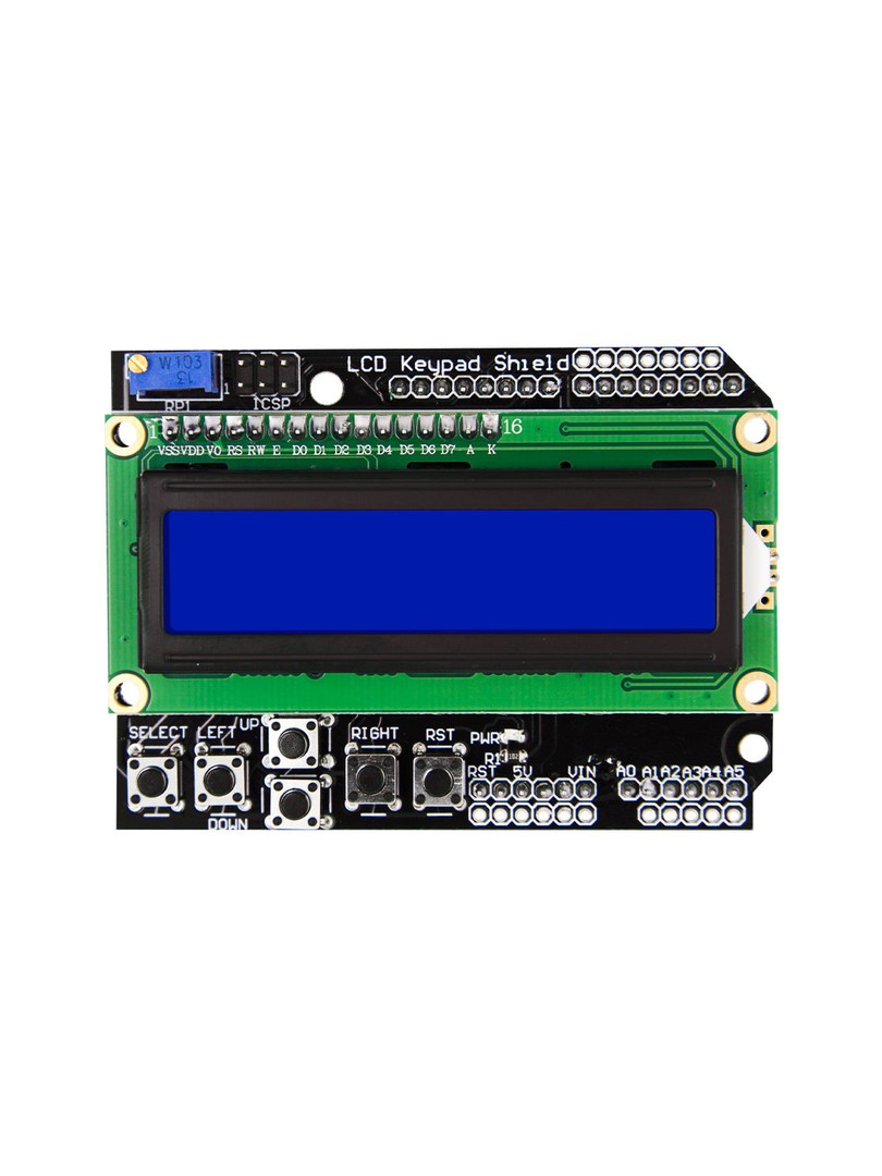 Moduł pracuje w trybie czterobitowyм i komunikuje się z Arduino poprzez cyfrowe linie danych. Klawiatura obsługiwana jest przez pojedyncze wejście analogowe z wykorzystaniem drabinki rezystorowej. Shield wyposażony jest w potencjometr regulacji kontrastu oraz możliwość sterowania podświetleniem, co czyni go rozwiązaniem dla paneli sterowania, systemów monitoringu oraz projektów edukacyjnych.