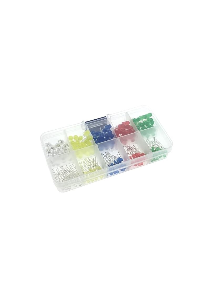 Diody są uporządkowane w wielokomorowym pudełku z tworzywa sztucznego, które ułatwia identyfikację i przechowywanie komponentów. Konstrukcja THT pozwala na łatwe montowanie zarówno na płytkach stykowych, jak i płytkach drukowanych PCB.