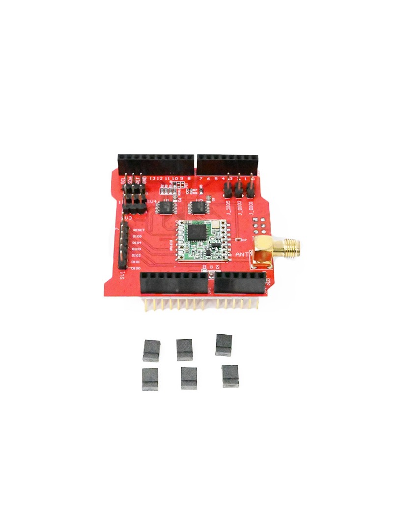 Shield wykorzystuje chip RF z serii RFM95W/RFM98W pracujący w paśmie czterysta trzydzieści trzy megaherca. Modulacja LoRa opiera się na technice rozpraszania widma chirp, która umożliwia odbieranie sygnałów o bardzo niskim poziomie mocy, nawet poniżej poziomu szumów. Wbudowany wzmacniacz mocy pozwala na regulację mocy nadawania, co wpływa na zasięg i zużycie energii. Syntezator częstotliwości o rozdzielczości sześćdziesięciu jeden herców zapewnia dokładny dostrojenie kanału komunikacyjnego. Shield komunikuje się z mikrokontrolerem Arduino za pomocą interfejsu SPI, a sterowanie odbywa się z wykorzystaniem bibliotek open-source dostępnych dla Arduino IDE.