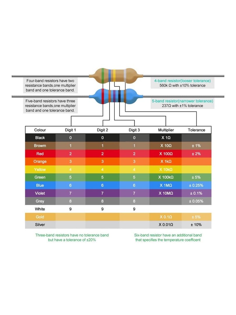 Wszystkie rezystory posiadają wyprowadzenia osiowe typu przewlekanego, umożliwiające montaż w płytkach THT. Zestaw dostarczany jest w pudełku plastikowym z przegrodami ułatwiającym segregację i przechowywanie komponentów.