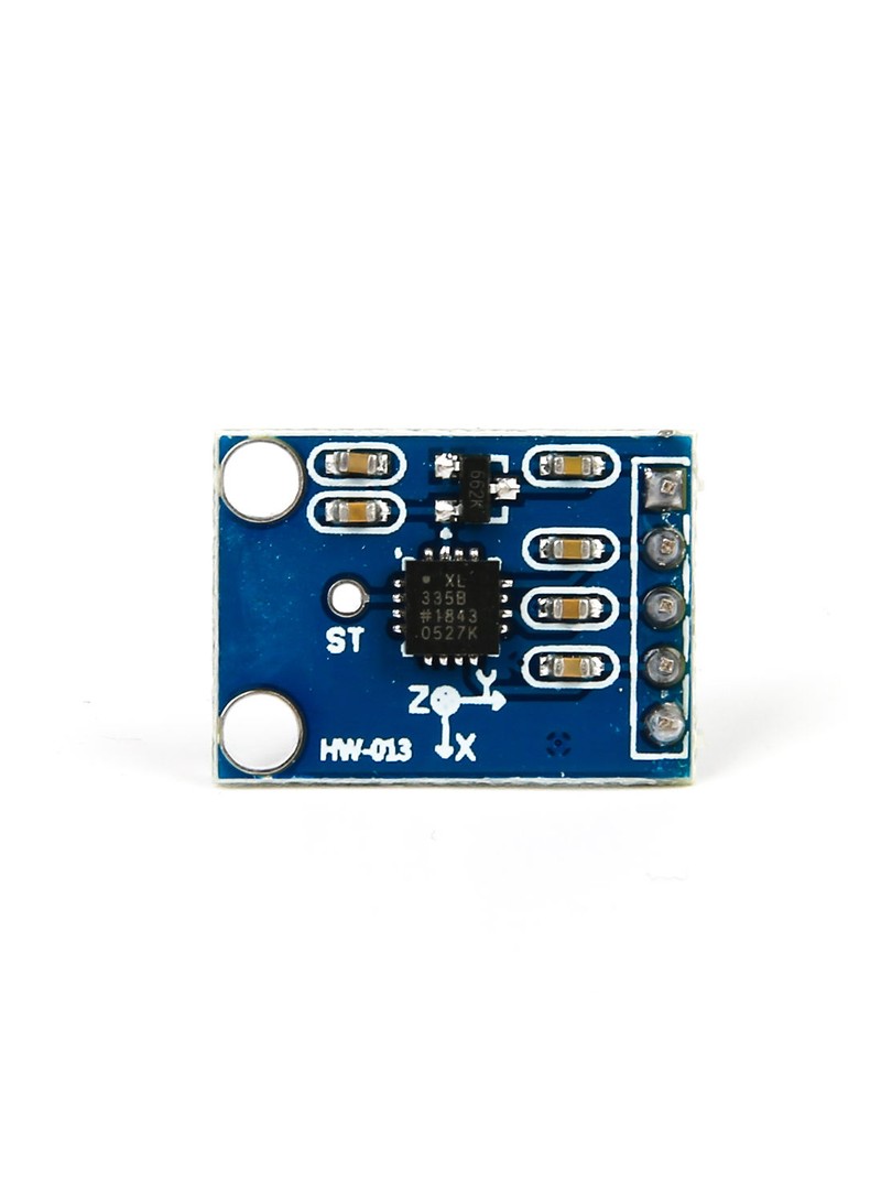 Układ ADXL335 wykorzystuje mikroelektromechaniczne struktury pojemnościowe do wykrywania przyspieszenia. Przyspieszenie działające wzdłuż każdej osi powoduje zmianę pojemności wewnętrznych kondensatorów, która jest następnie przetwarzana na proporcjonalne napięcie analogowe. Składowe wektora grawitacji mogą być wykorzystane do obliczenia kąta nachylenia względem poziomu. Sygnały analogowe są odczytywane przez mikrokontroler za pomocą kanałów przetwornika analogowo-cyfrowego.