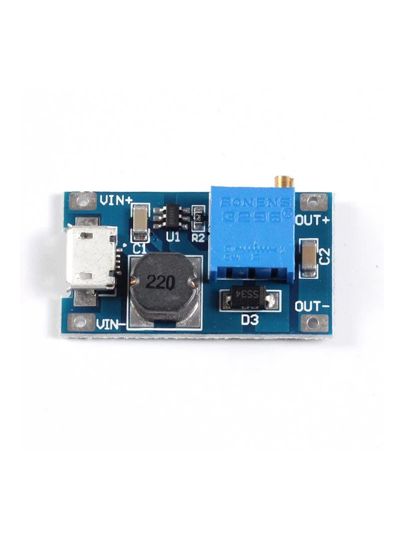 Moduł wykorzystuje topologię step-up (boost), w której układ MT3608 przetwarza niższe napięcie wejściowe na wyższe napięcie wyjściowe poprzez impulsowe ładowanie cewki indukcyjnej i kondensatorów wygładzających. Regulacja napięcia wyjściowego odbywa się poprzez obrót pokrętła potencjometru montowanego na płytce. Przetwornica zapewnia stałe wyjście przy zmiennym obciążeniu dzięki wbudowanemu układowi sprzężenia zwrotnego.