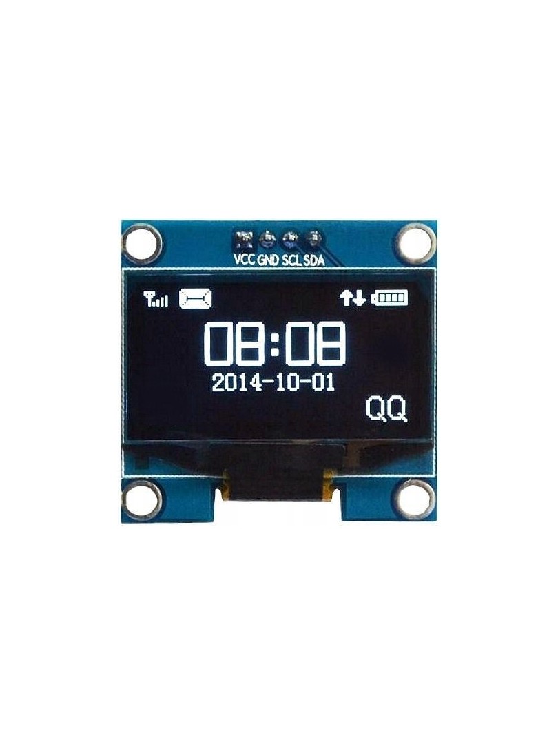 Wyświetlacz OLED 0,96 cala | Rozdzielczość 128×64 pikseli | Interfejs I2C 4-pin | Kontroler SSD1306 | Kolor biały | Napięcie 3–5V DC