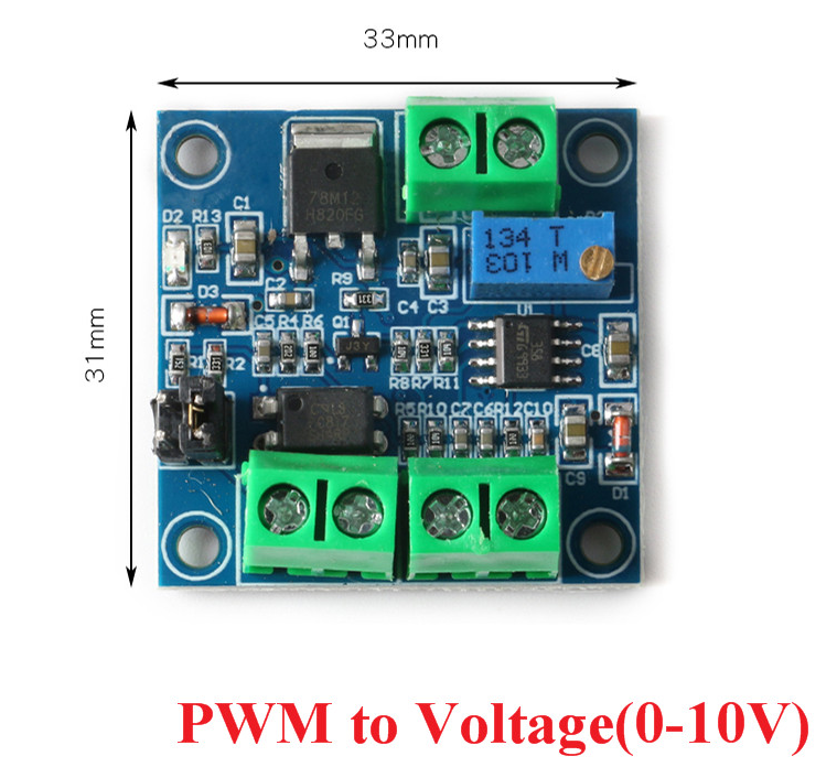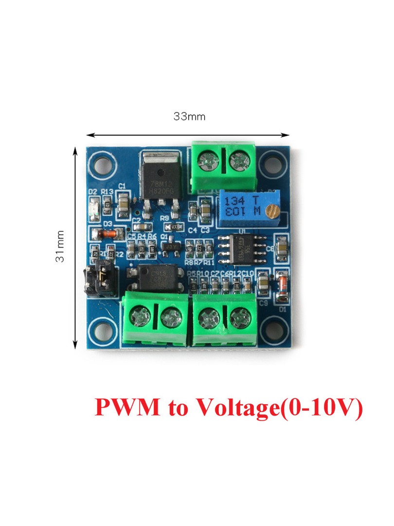 Moduł obsługuje dwukierunkową konwersję sygnału. W trybie podstawowym przekształca sygnał PWM na napięcie wyjściowe, natomiast w trybie odwrotnym przetwarza napięcie wejściowe na sygnał PWM. Kompaktowa konstrukcja i elastyczne ustawienia poziomu wejściowego sprawiają, że moduł może współpracować z różnymi układami sterowania.