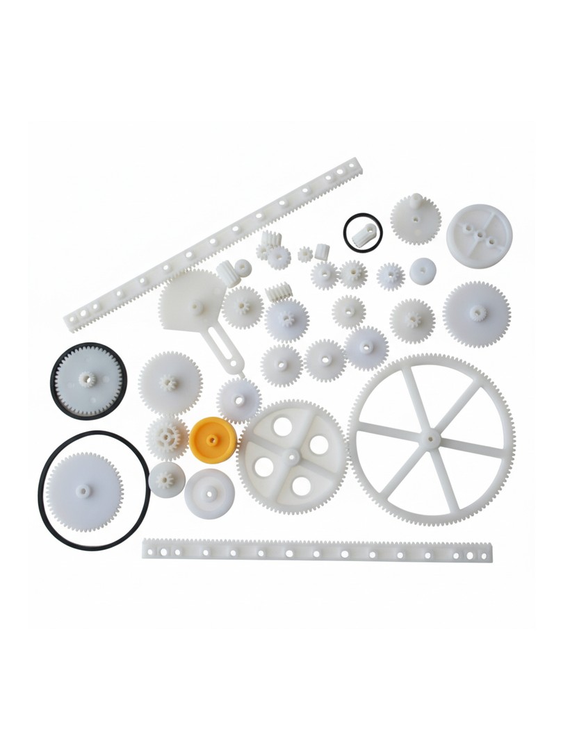 Komponenty wykonane z lekkiego plastiku nadają się do zastosowań z małymi silnikami i niskimi obciążeniami, co czyni zestaw odpowiednim do nauki STEM, prototypowania oraz twórczego projektowania mechanicznego.