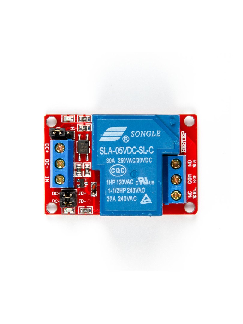 Jednokanałowy moduł przekaźnikowy ProRock Songle jest przeznaczony do sterowania obciążeniami o dużym prądzie za pomocą niskonapięciowego sygnału kontrolnego. Wyposażony w separację galwaniczną poprzez optoizolator zapewnia stałe pracy i odporność na zakłócenia w systemach automatyki i sterowaniach mocy. Płytka umożliwia wybór wyzwalania wysokim lub niskim stanem logicznym za pomocą zworki oraz oferuje wizualizację stanu zasilania i aktywacji przekaźnika poprzez diody LED.