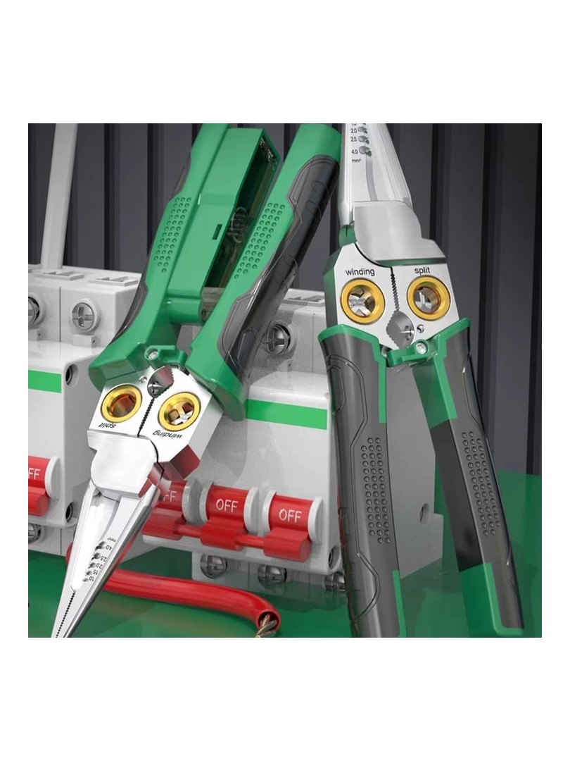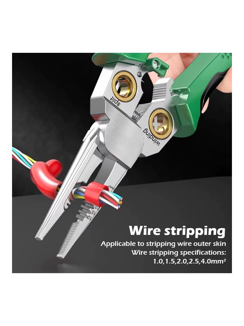Profesjonalny wielofunkcyjny ściągacz izolacji łączący w sobie osiem niezbędnych narzędzi. Wykonany z wysokiej jakości stali nierdzewnej z ergonomiczną rękojeścią TPR dla większego komfortu i precyzji podczas prac elektrycznych.
