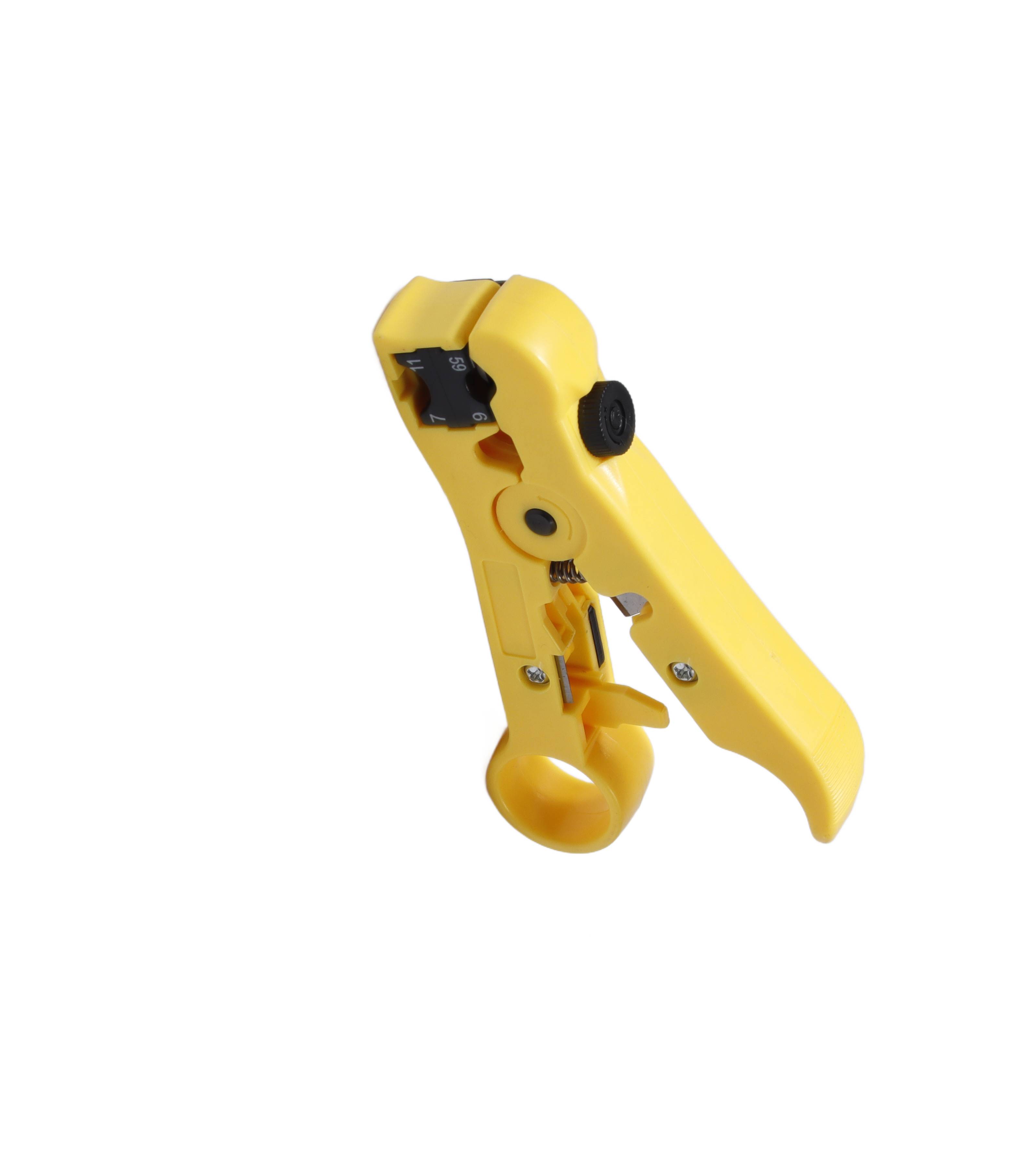 Profesjonalne narzędzie do ściągania izolacji z kabli koncentrycznych wyposażone w trzy regulowane ostrza i ergonomiczną konstrukcję. Zaprojektowany do precyzyjnego usuwania izolacji z różnych typów kabli koncentrycznych przy prostej obsłudze ręcznej.