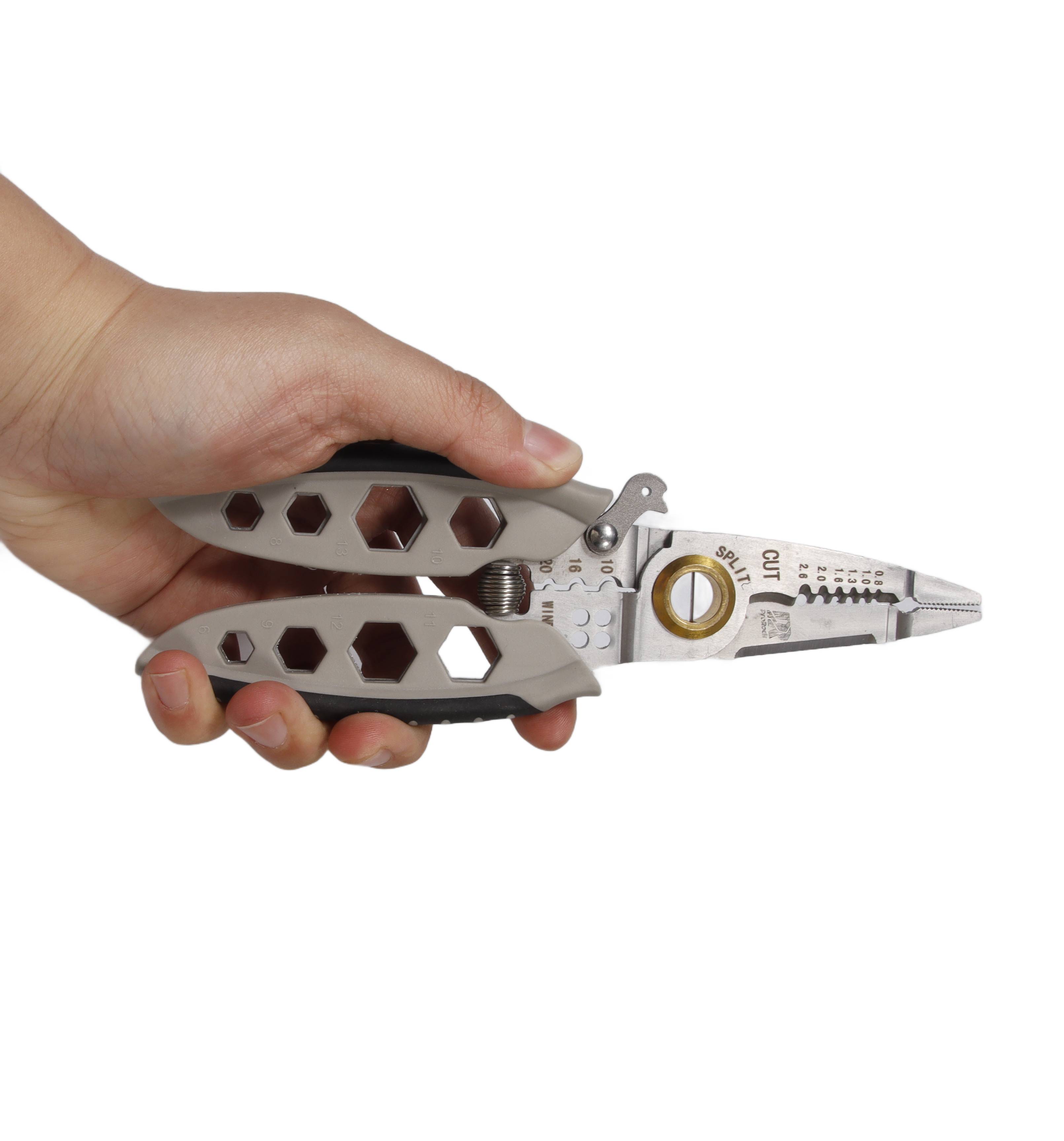 Najwyższej jakości narzędzie wielofunkcyjne do ściągania izolacji, wyposażone w konstrukcję ze stali nierdzewnej i ergonomiczną rękojeść z tworzywa TPR. Zaprojektowany do profesjonalnych prac elektrycznych z wszechstronną funkcjonalnością.