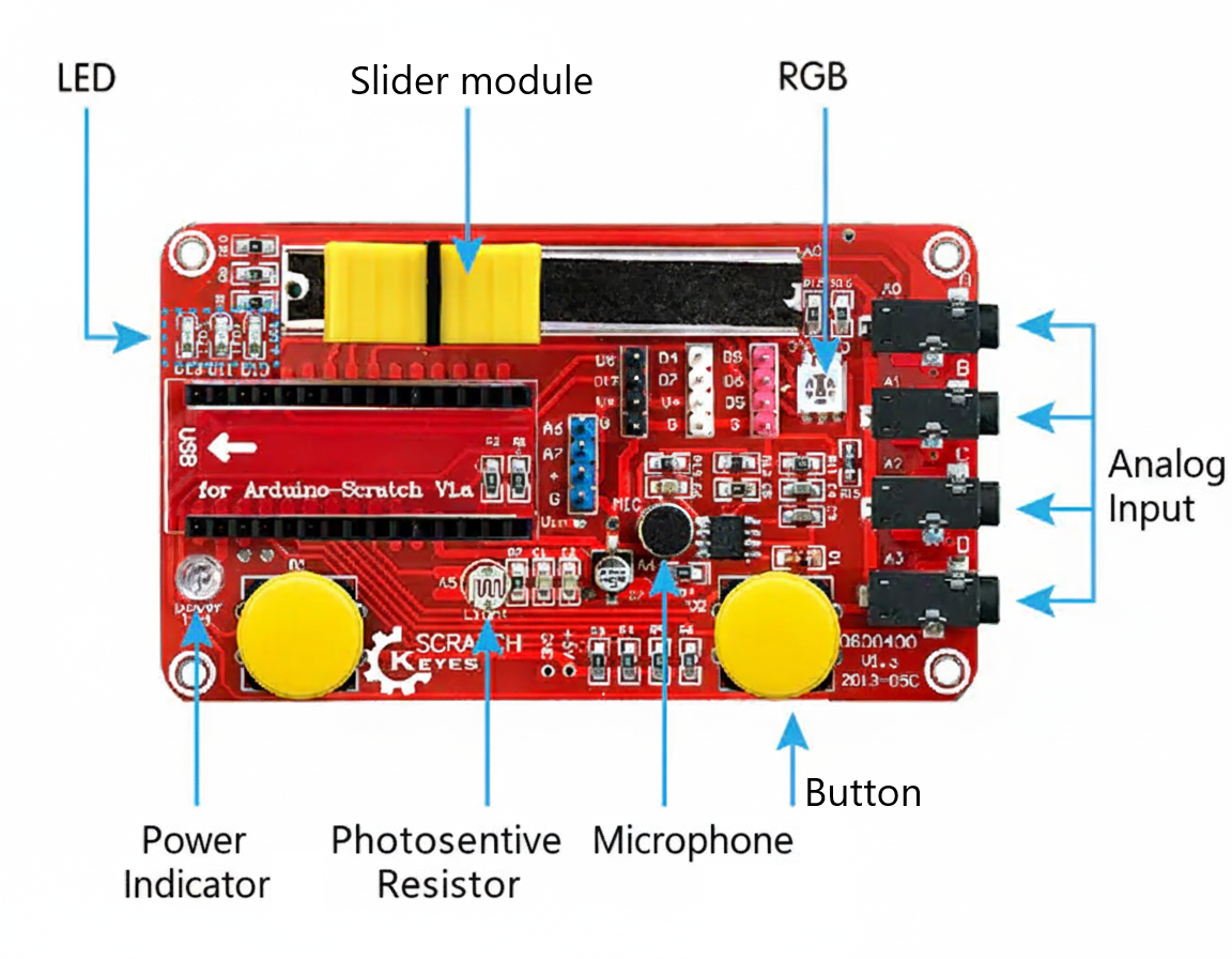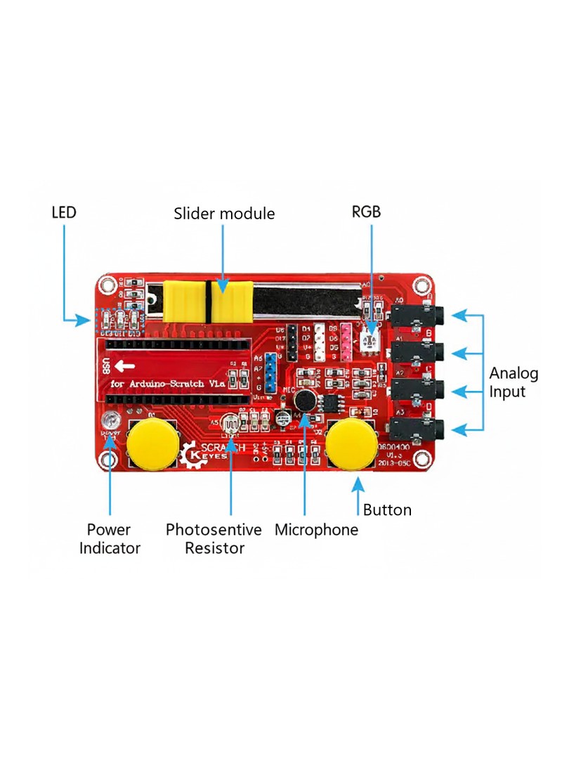 Zestaw przeznaczony jest dla początkujących programistów, uczniów oraz nauczycieli prowadzących zajęcia STEAM. Pozwala na budowanie projektów, w których animacje i programy reagują na fizyczne sygnały z czujników – suwak, przyciski, światło i dźwięk. Programowanie odbywa się przy użyciu narzędzi opartych na Scratch, takich jak S4A (Scratch for Arduino), co sprawia, że nauka logiki programowania staje się intuicyjna i przystępna.