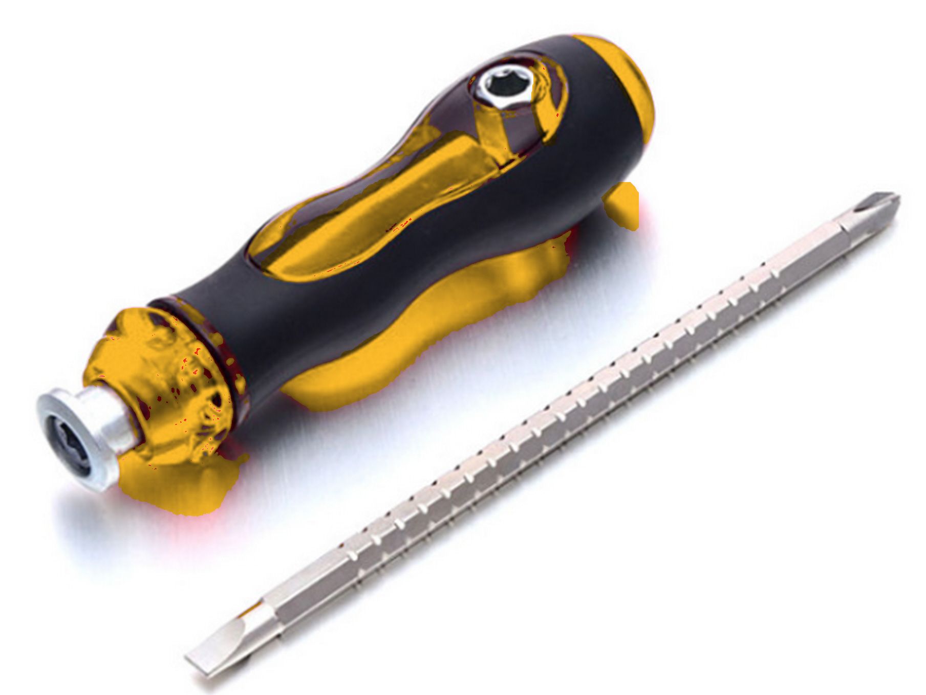 Profesjonalny wkrętak z wytrzymałą konstrukcją ze stali węglowej i odłączaną, antypoślizgową rękojeścią. Każdy egzemplarz dostarczany jest w losowo wybranym kolorze wykończenia.