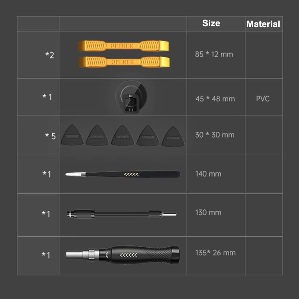 • 1 x zestaw wkrętaków precyzyjnych Torx 145 w 1