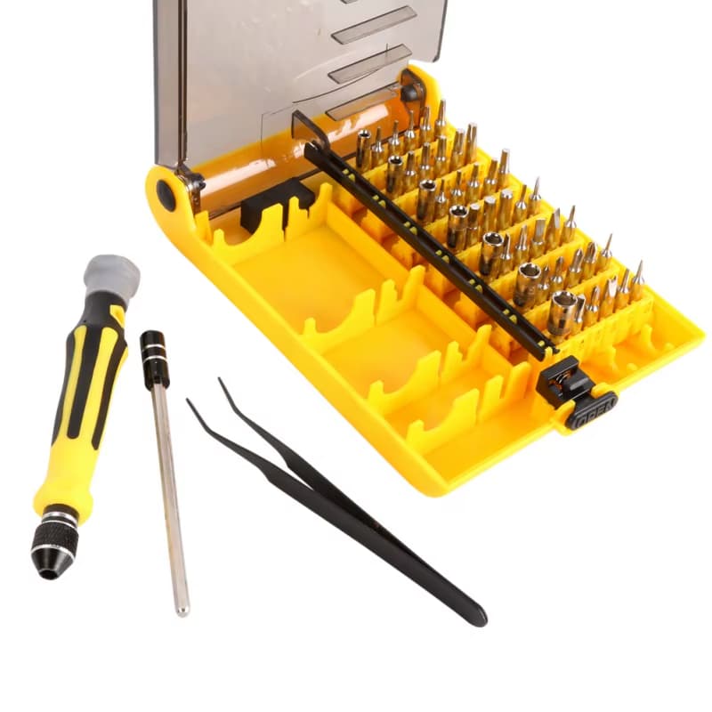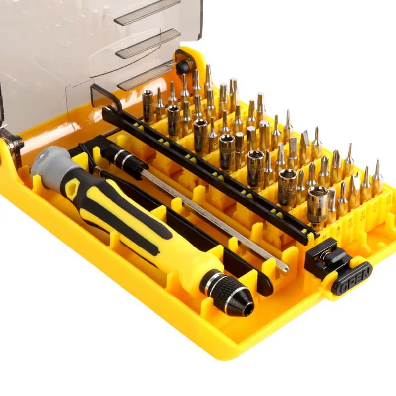 Set, 45-in-1, Yellow to wszechstronny i kompaktowy zestaw wkrętaków precyzyjnych przeznaczony do szerokiego zakresu zadań, od naprawy elektroniki po konserwację w gospodarstwie domowym. Zestaw zawiera 45 wysokiej jakości bitów i akcesoriów, dzięki czemu jest niezbędnym narzędziem zarówno dla majsterkowiczów, techników, jak i profesjonalistów.