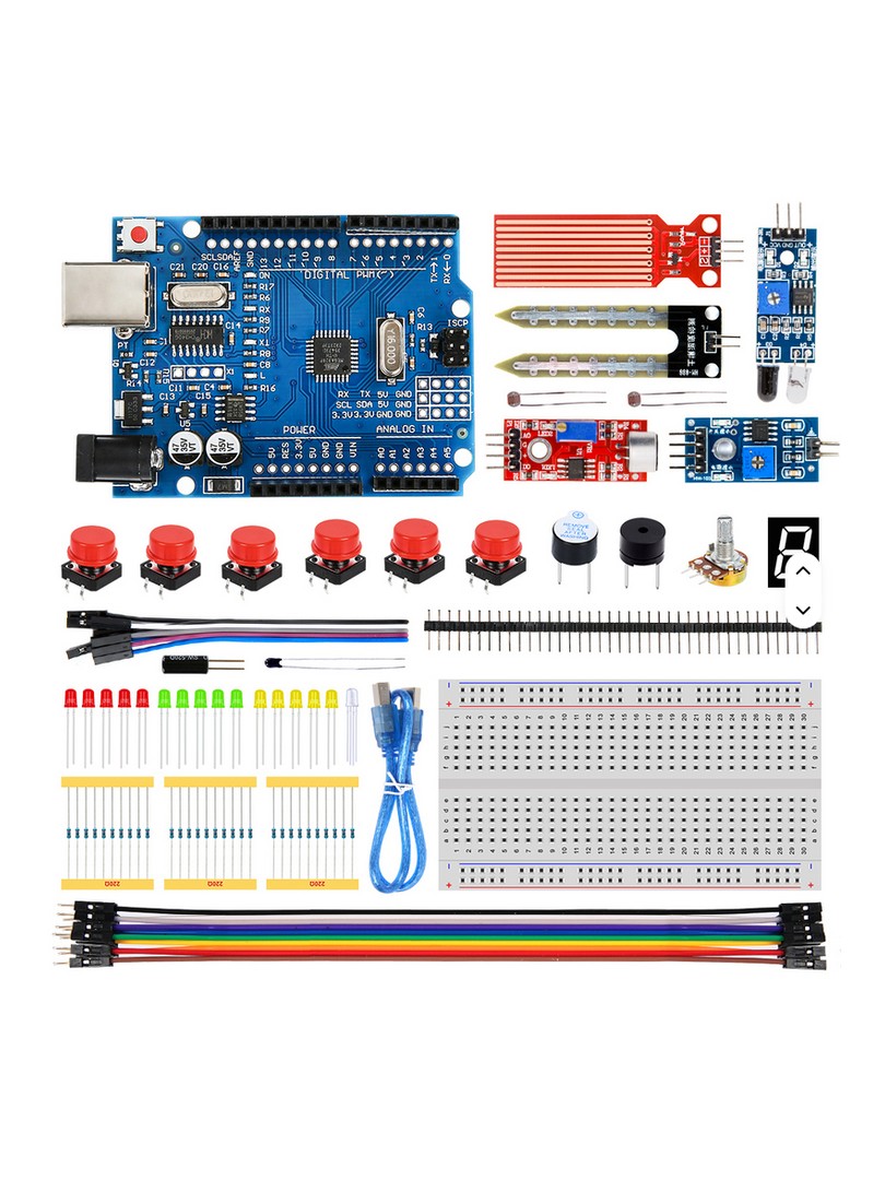 Zestaw startowy ProRock stanowi gotowe wprowadzenie do elektroniki i programowania w środowisku Arduino UNO R3. Zawiera ponad sto siedemdziesiąt elementów, w tym czujniki, wskaźniki, moduły sterujące oraz płytkę prototypową umożliwiającą budowę obwodów bez lutowania. Przeznaczony dla uczniów, nauczycieli i hobbystów rozpoczynających naukę systemów wbudowanych.