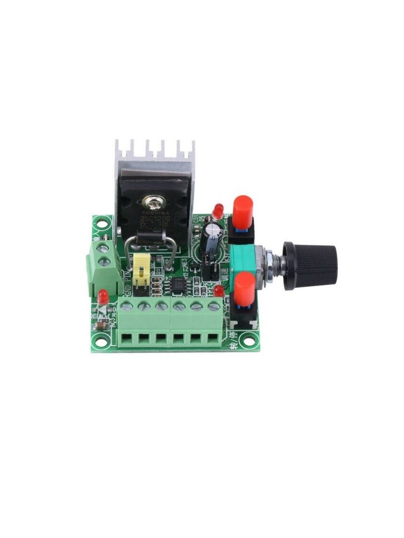 Generator sygnałów sterujących ProRock to kompaktowy moduł przeznaczony do generowania impulsów kontrolnych dla zewnętrznych sterowników silników krokowych. Urządzenie wytwarza regulowane sygnały impulsowe, które sterują prędkością obrotową oraz kierunkiem ruchu silnika poprzez odpowiedni sterownik. Moduł wyposażono w przyciski i przełączniki do sterowania kierunkiem oraz funkcją start-stop, a także potencjometr umożliwiający regulację częstotliwości impulsów.
