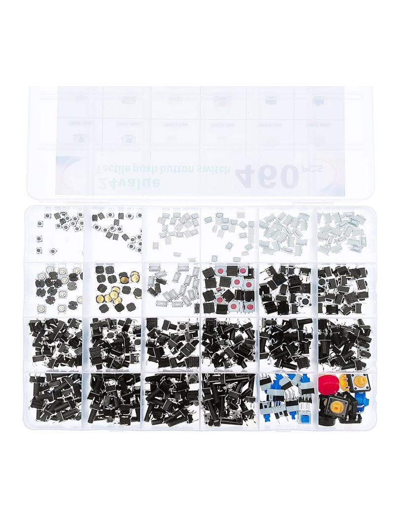 Zestaw przycisków taktylnych ProRock zawiera czterdzieści typów mikroprzełączników w konfiguracji dwupinowej i czteropinowej. Komponenty są przeznaczone do zastosowań sygnałowych w urządzeniach elektronicznych, interfejsach sterujących oraz projektach edukacyjnych. Wszystkie przyciski zapewniają mechaniczne sprzężenie zwrotne z automatycznym powrotem po zwolnieniu nacisku.