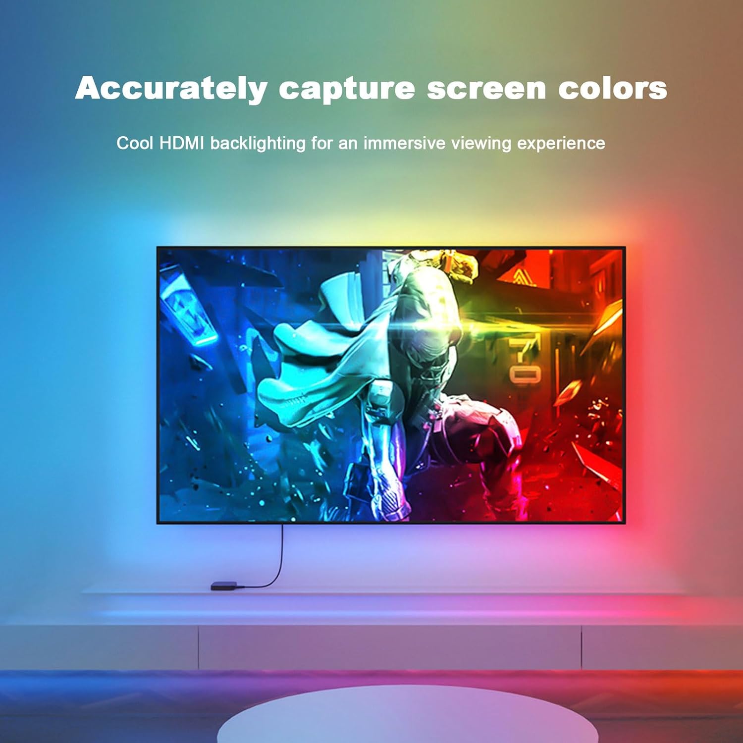 Ten zestaw zapewnia proste rozwiązanie oświetlenia telewizora oparte na HDMI, umożliwiające uzyskanie zsynchronizowanych efektów podświetlenia na wyświetlaczach o przekątnej 75-85 cali.