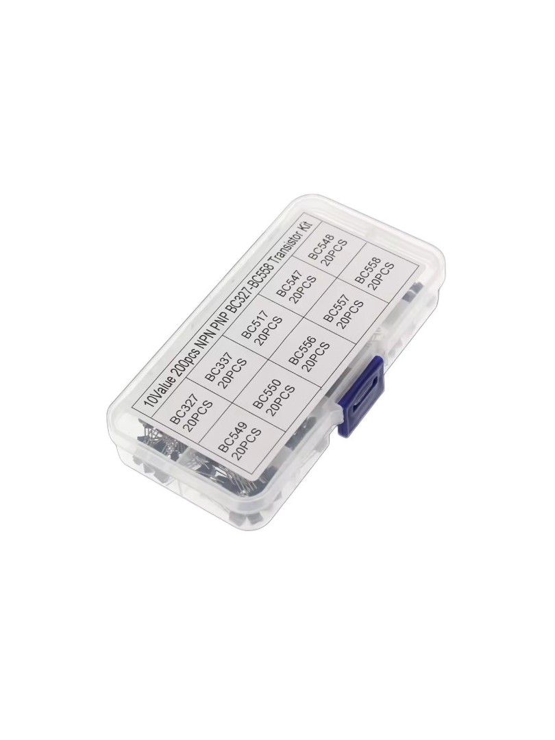 Zestaw ProRock zawiera dwieście tranzystorów bipolarnych z popularnej serii BC, przeznaczonych do prototypowania, napraw elektronicznych oraz zastosowań edukacyjnych. Asortment obejmuje zarówno tranzystory NPN jak i PNP, umożliwiając realizację układów komplementarnych oraz zrównoważonych topologii.