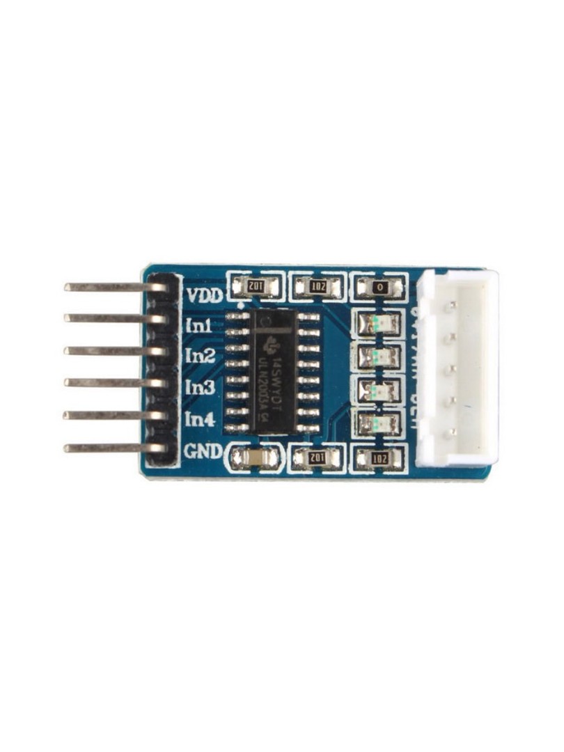 Wbudowane złącze XH-5P umożliwia bezpośrednie podłączenie kompatybilnego silnika krokowego, a cztery diody LED sygnalizują aktywny stan poszczególnych faz sterowania. Moduł znajduje zastosowanie w projektach wymagających dokładny pozycjonowania i prostego interfejsu kontrolnego.
