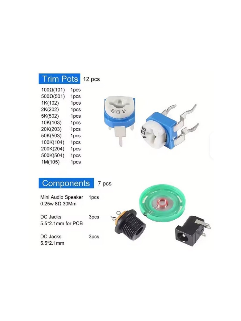 Wszystkie elementy dostosowano do montażu na płytkach stykowych oraz do lutowania na płytkach prototypowych. Komponenty uporządkowano w pudełku ułatwiającym dostęp podczas pracy z układami.
