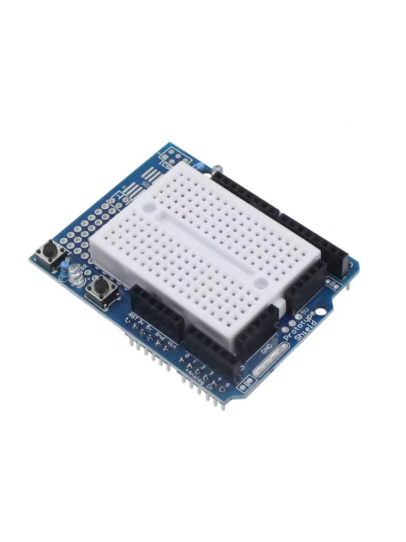 ProRock R3 Proto Prototype Shield to praktyczna płytka rozszerzeń przeznaczona do szybkiego i uporządkowanego prototypowania na platformach Arduino UNO R3. Łączy pole prototypowe do lutowania z odłączaną mini płytką stykową, oferując możliwość budowy zarówno z tworzywa, jak i tymczasowych obwodów. Dołączona płytka stykowa o stu siedemdziesięciu punktach montażowych może być przymocowana do shielda za pomocą taśmy samoprzylepnej.