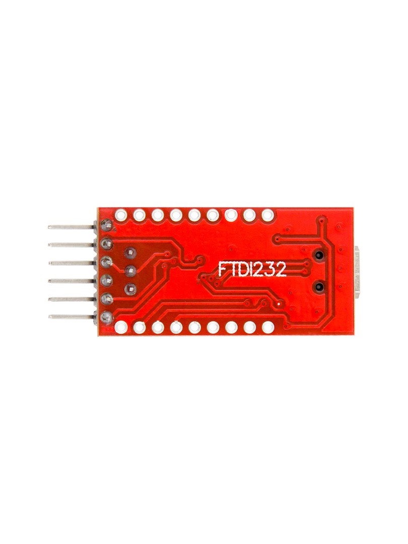 Moduł konwertuje sygnały USB pochodzące z komputera na sygnały szeregowe UART na poziomie TTL. Układ FT232RL obsługuje interfejs USB po stronie komputera, a następnie przekształca komunikację na linie TX i RX zgodne z protokołem UART. Użytkownik może wybrać napięcie logiczne wyjściowe za pomocą zworek, co umożliwia bezpośrednie podłączenie do urządzeń pracujących na napięciu trzy przecinek trzy wolta lub pięć woltów. Diody LED sygnalizują w czasie rzeczywistym kierunek przepływu danych, ułatwiając diagnostykę połączenia. Bezpiecznik samonaprawialny chroni port USB komputera przed uszkodzeniem w przypadku zwarcia lub nadmiernego poboru prądu przez podłączone urządzenie.