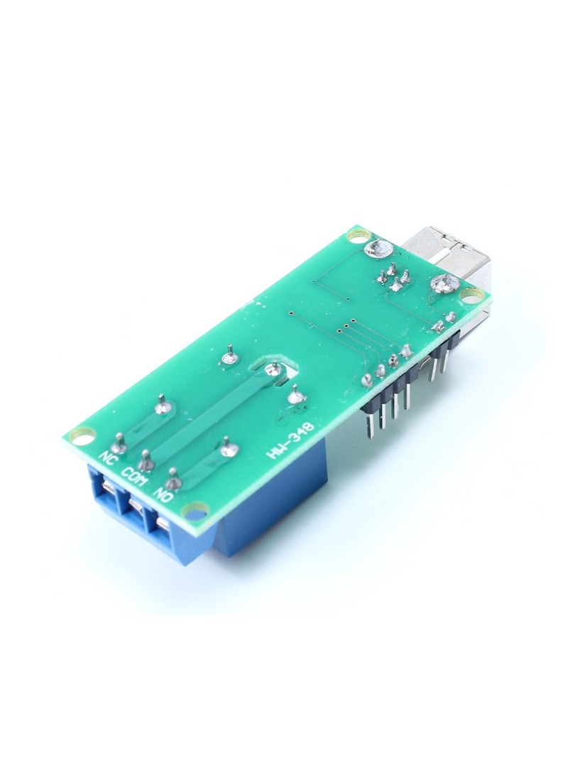 Komputer komunikuje się z modułem przez kwadratowy port USB. Użytkownik wysyła polecenia sterujące za pomocą oprogramowania terminala szeregowego zainstalowanego na PC. Po odebraniu komendy przekaźnik zmienia stan – w stanie wzbudzenia styk COM łączy się ze stykiem NO, w stanie spoczynku COM łączy się ze stykiem NC. Diody LED informują o aktualnym stanie przekaźnika.