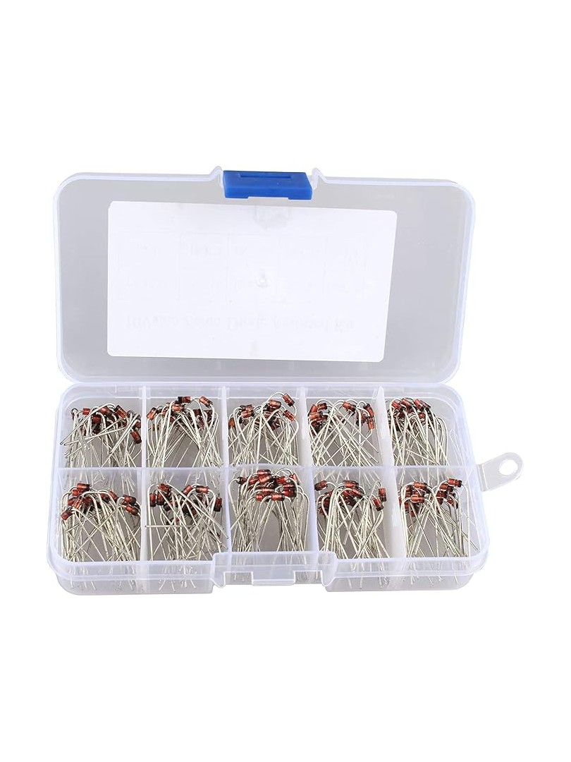 Każda wartość napięcia reprezentowana jest przez dziesięć sztuk identycznych diod, co ułatwia planowanie projektów wymagających wielu egzemplarzy tego samego komponentu. Zestaw dostarczany jest w praktycznym opakowaniu typu woreczek foliowy.