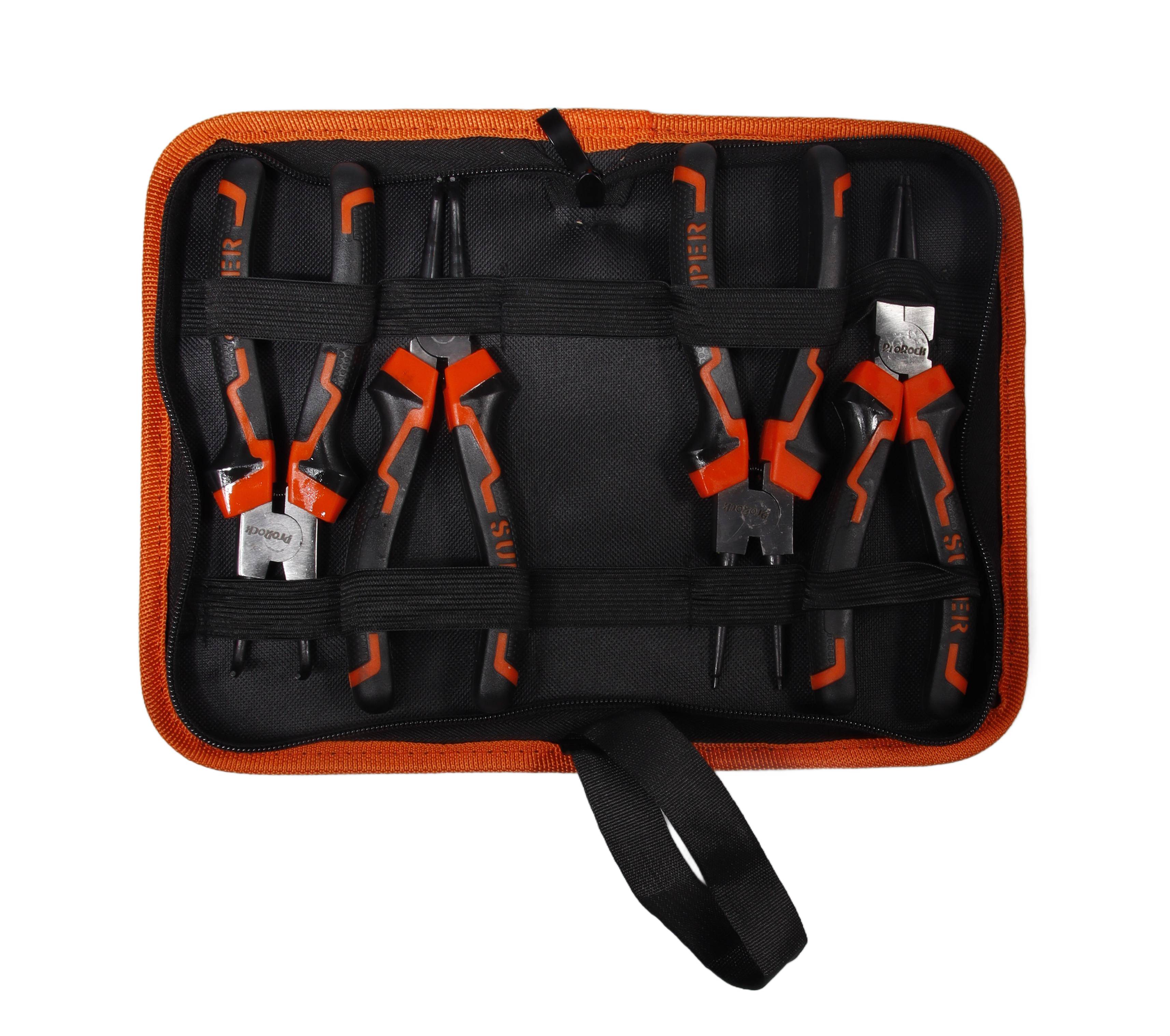 ProRock zestaw 4-częściowe szczypce do pierścieni osadczych 7 cali czarne-pomarańczowe