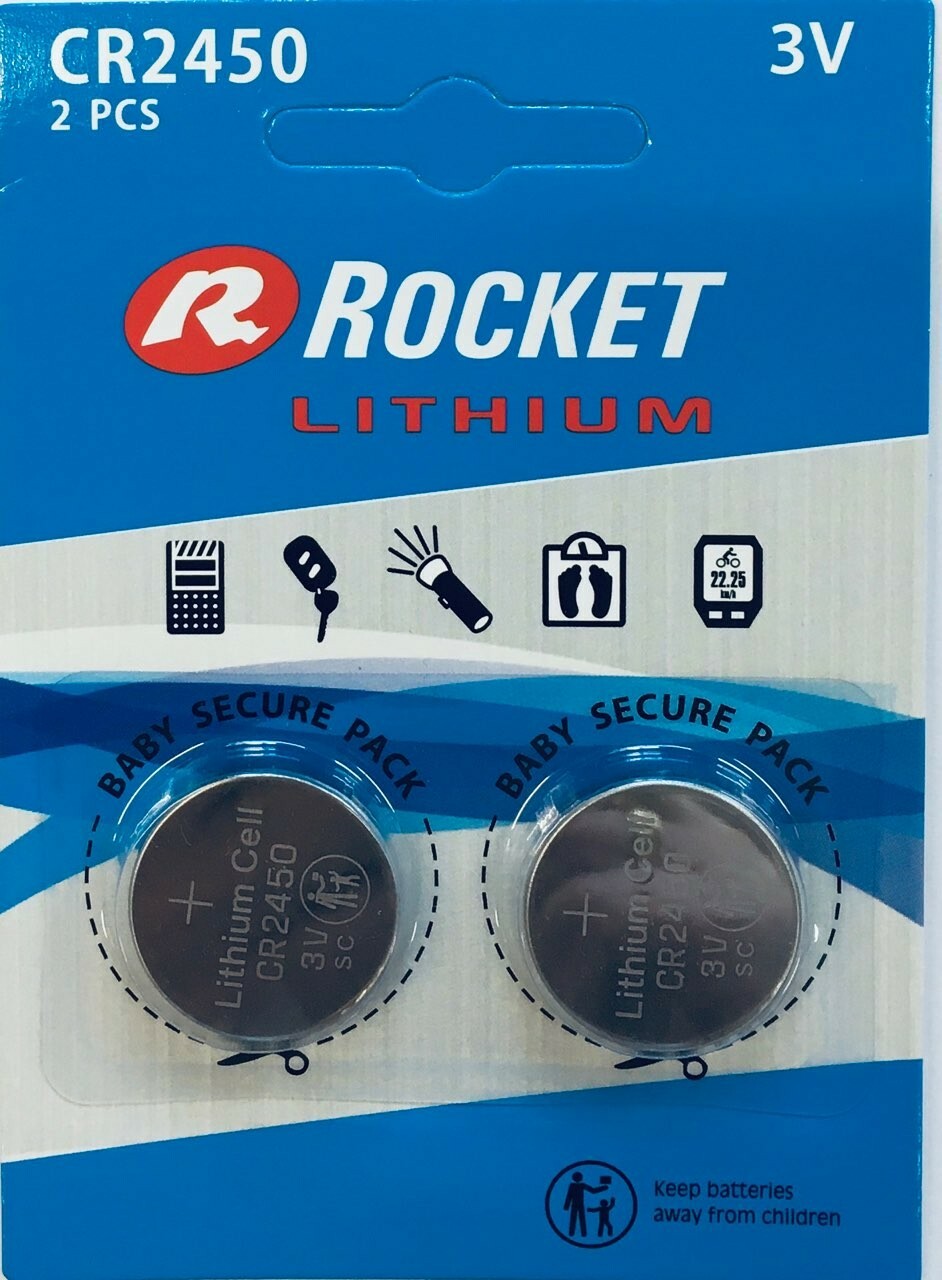 Rocket CR2450 to litowa bateria pastylkowa o wysokiej pojemności i napięciu 3 V, przeznaczona do urządzeń wymagających długotrwałego i stabilnego zasilania. Zestaw zawiera 2 oddzielnie zamknięte baterie w fabrycznym opakowaniutypu blister, zapewniając niezawodne zamienniki i wygodne przechowywanie zapasowych baterii.Dzięki średnicy 24 mm i grubości 5,0 mm bateria CR2450 oferuje znacznie większą pojemność niż cieńsze baterie pastylkowe.