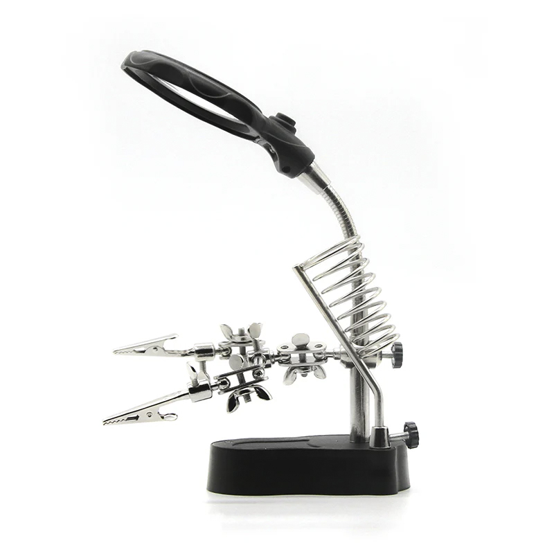 Zacisk pomocniczy z oświetleniem LED i szkłem powiększającym jest odpowiedni do konserwacji małych obwodów. Służy do mocowania płytki PCB. Szkło powiększające powiększa punkt roboczy do spawania i innych operacji. Jest szeroko stosowany w inspekcjach branży konserwacyjnej, elektronice przemysłowej, laboratoriach i innych dziedzinach.