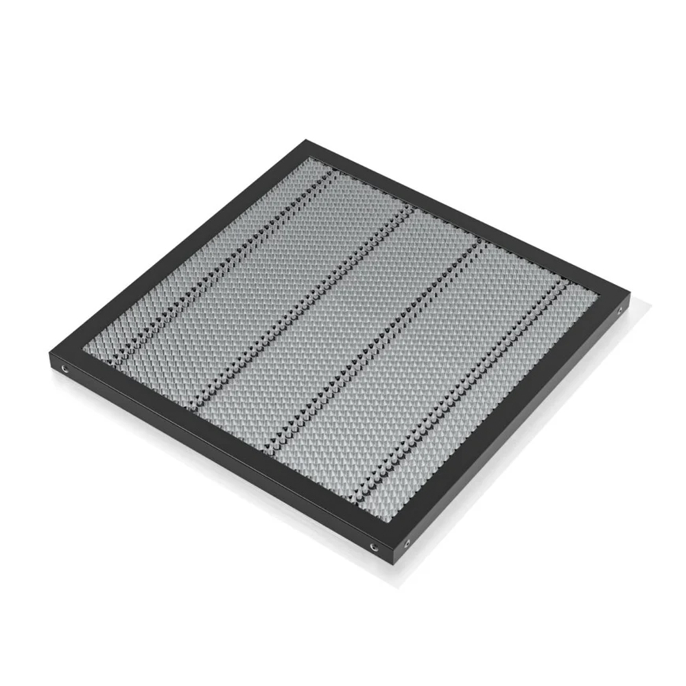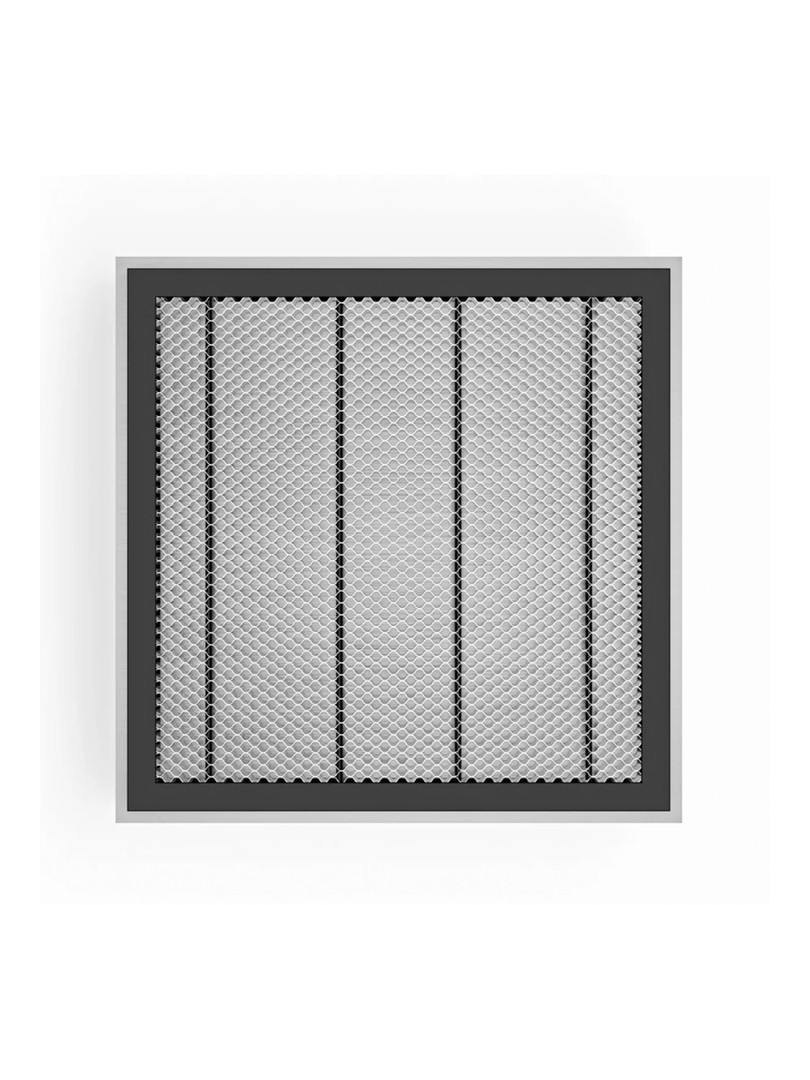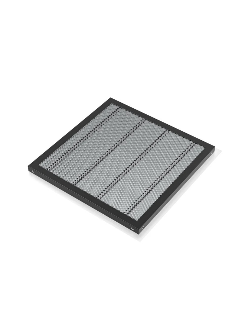 The TOOCAA Honeycomb Working Panel is an accessory designed for laser cutting and engraving machines, providing a stable and efficient working surface. It features a honeycomb grid structure, which is ideal for these tasks as it allows optimal airflow and helps reduce smoke buildup by allowing smoke and debris to pass through during cutting. This leads to cleaner cuts and reduces material burning or scorching.