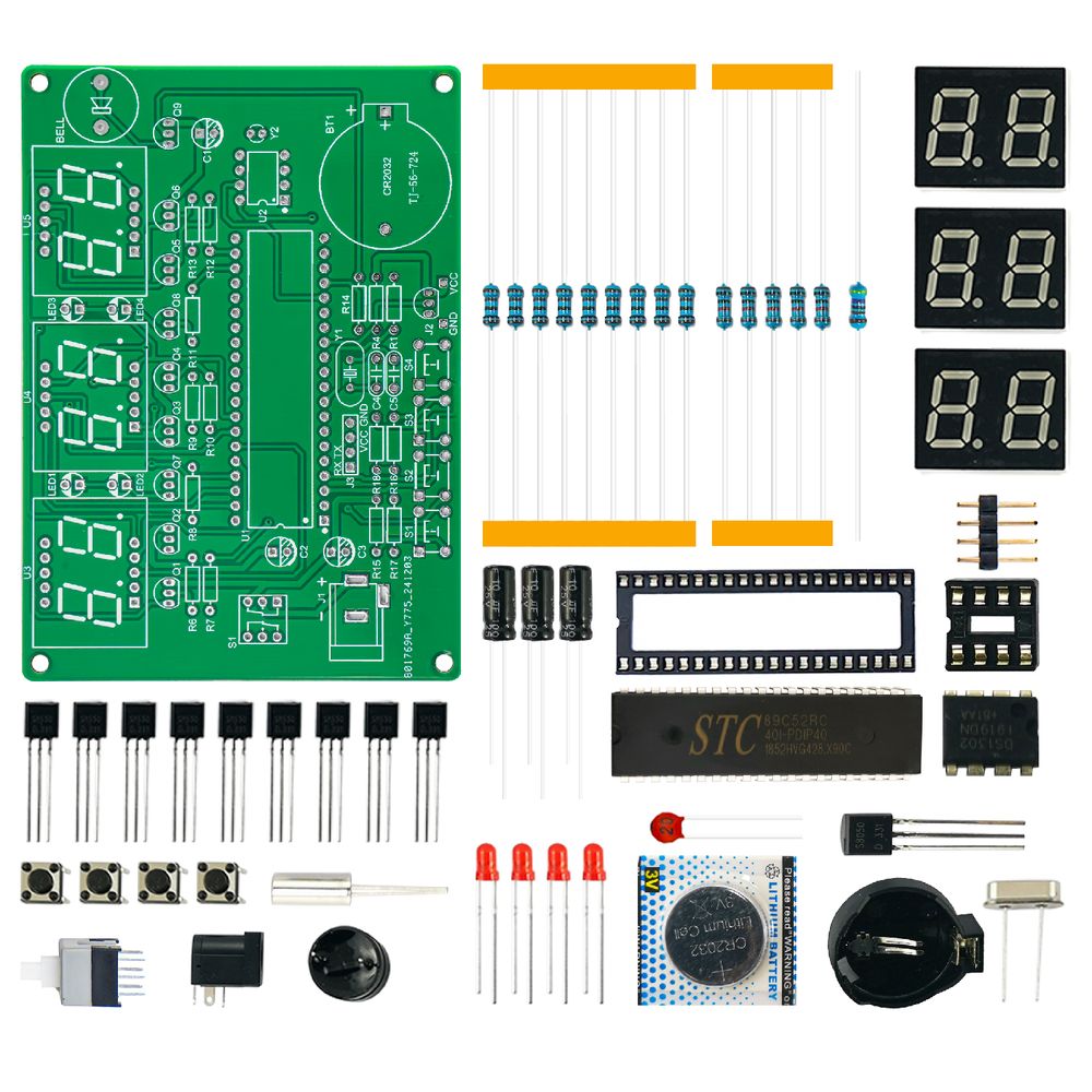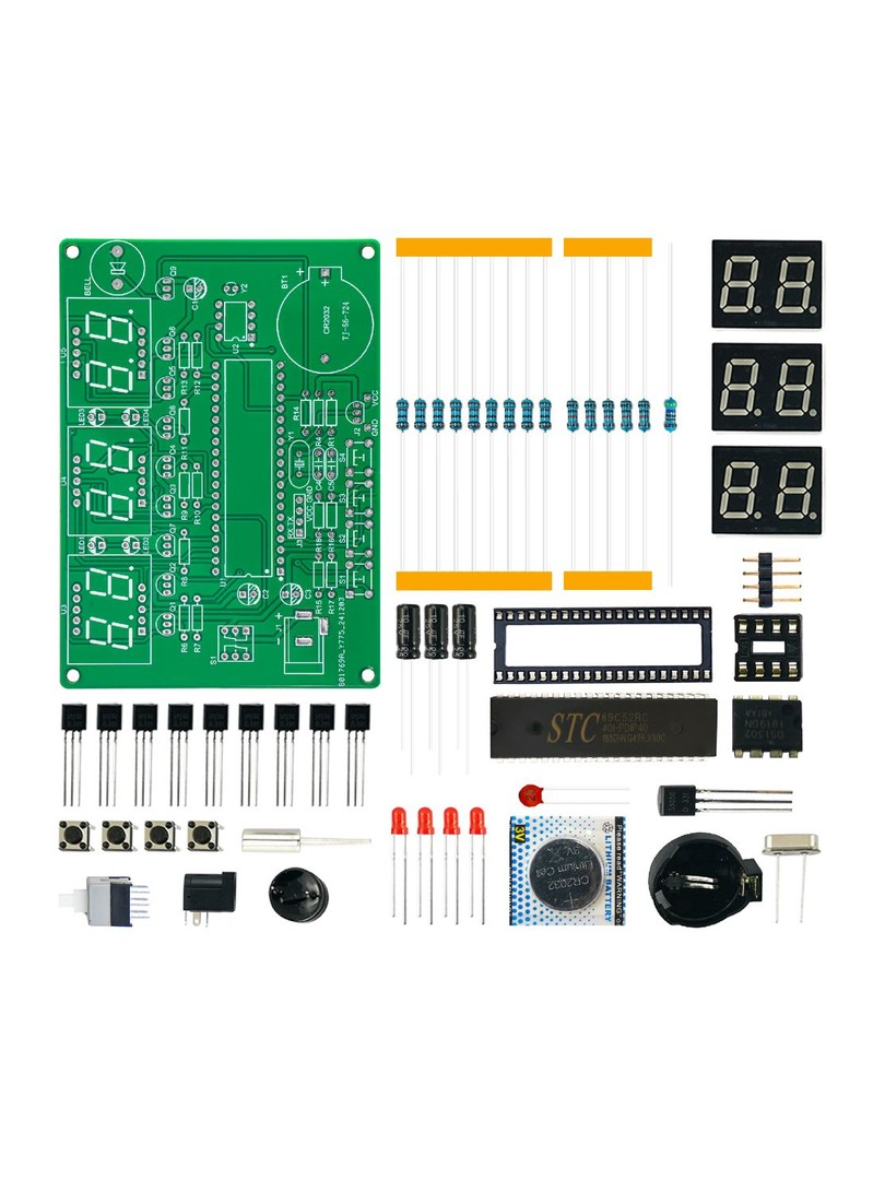 Ten zaawansowany zestaw zegara cyfrowego dla majsterkowiczów wyposażony jest w 6-cyfrowy wyświetlacz LED zasilany przez mikrokontroler STC89C52, oferujący pięć praktycznych funkcji w jednym kompaktowym urządzeniu. Dzięki wbudowanemu podtrzymaniu zasilania i precyzyjnemu układowi pomiaru czasu, utrzymuje dokładny czas nawet podczas przerw w dostawie prądu, co czyni go zarówno projektem edukacyjnym, jak i w pełni funkcjonalnym zegarkiem.