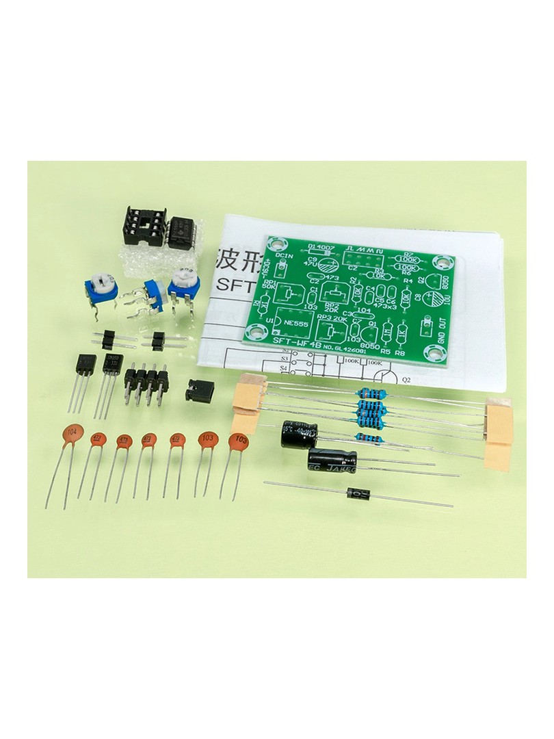 Wielokanałowy generator przebiegów NE555 może generować fale prostokątne, piłokształtne, trójkątne i sinusoidalne. Wyboru kształtu fali wyjściowej dokonuje się za pomocą nasadki zwarciowej. Obwód jest prosty i łatwy w obsłudze.