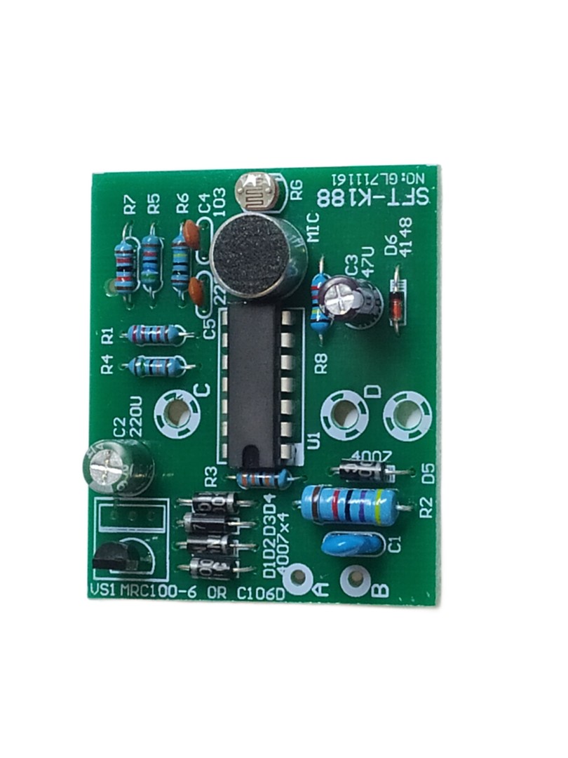 SFT-K188 to praktyczny zestaw przełącznika aktywowanego dźwiękiem i światłem, przeznaczony dla początkujących elektroników i entuzjastów majsterkowania. Moduł ten automatycznie aktywuje podłączone urządzenie (takie jak światło), gdy wykryje dźwięk w ciemnym otoczeniu, a następnie wyłącza je po krótkim czasie. Jest szeroko stosowany w inteligentnym sterowaniu oświetleniem i podstawowych scenariuszach automatyzacji.