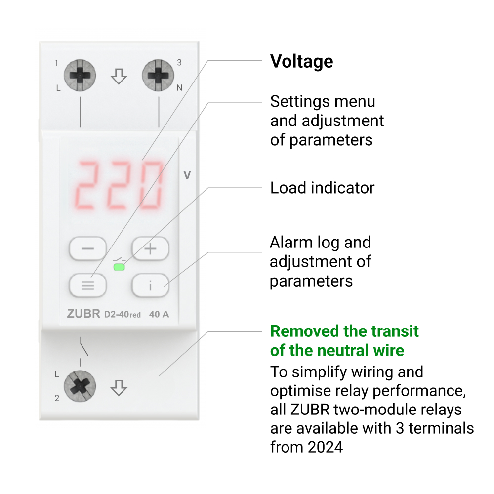 Konfigurowalne pasmo histerezy 0-5 V zapobiega uciążliwemu wyzwalaniu w pobliżu wartości progowych. Zapewnia stabilny powrót napięcia przed ponownym podłączeniem.